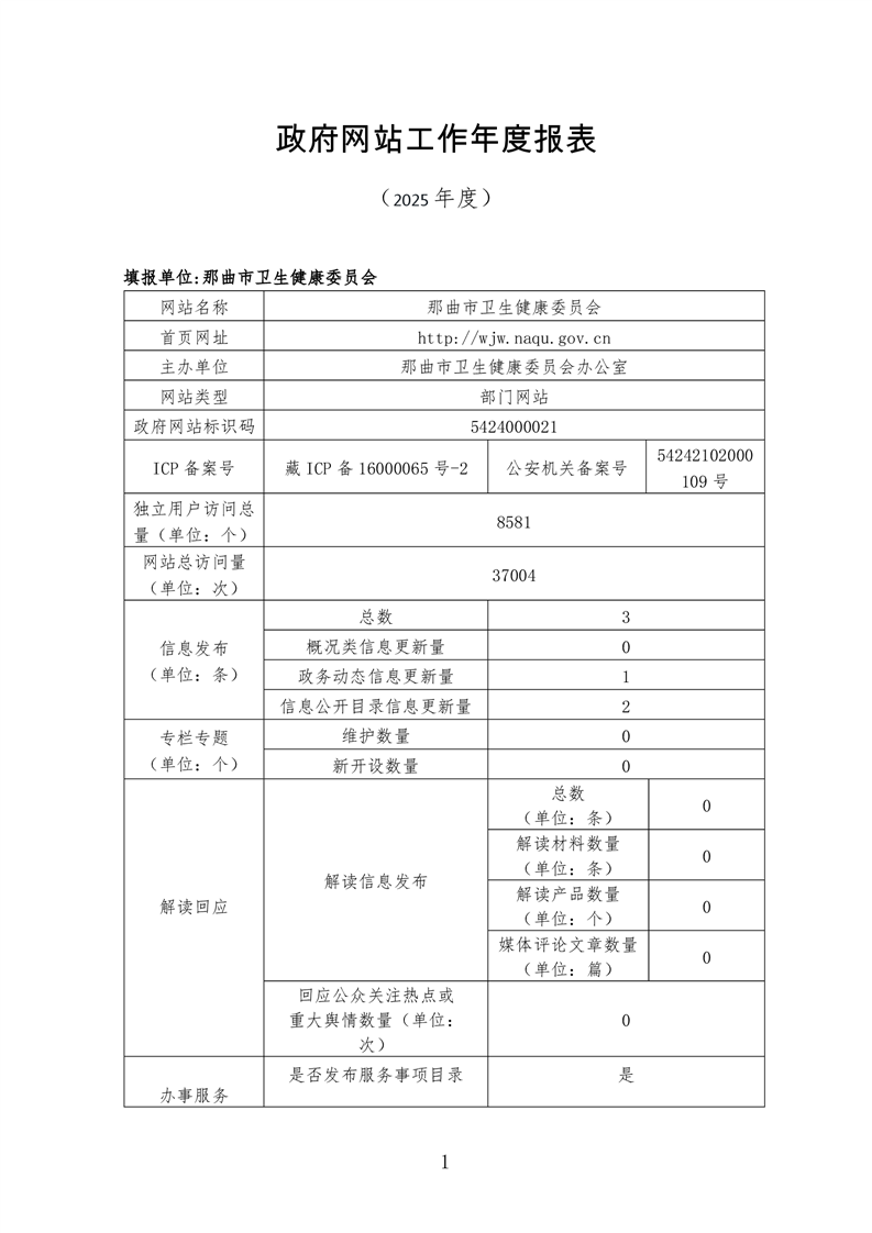 那曲市卫生健康委员会2024年度政府门户网站工作年度报表